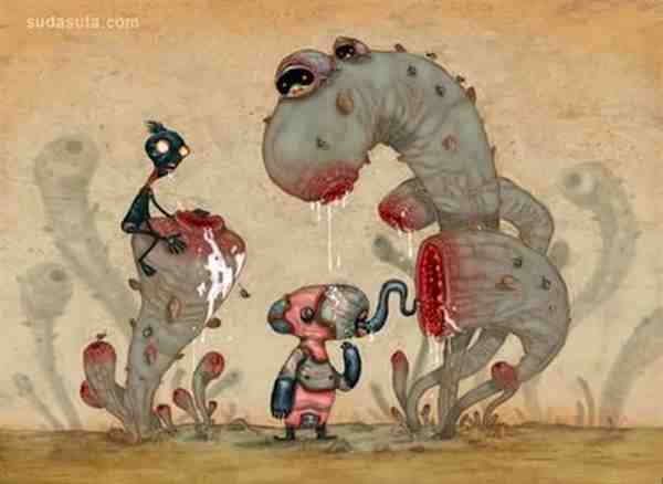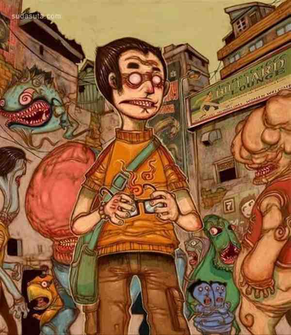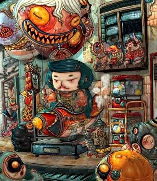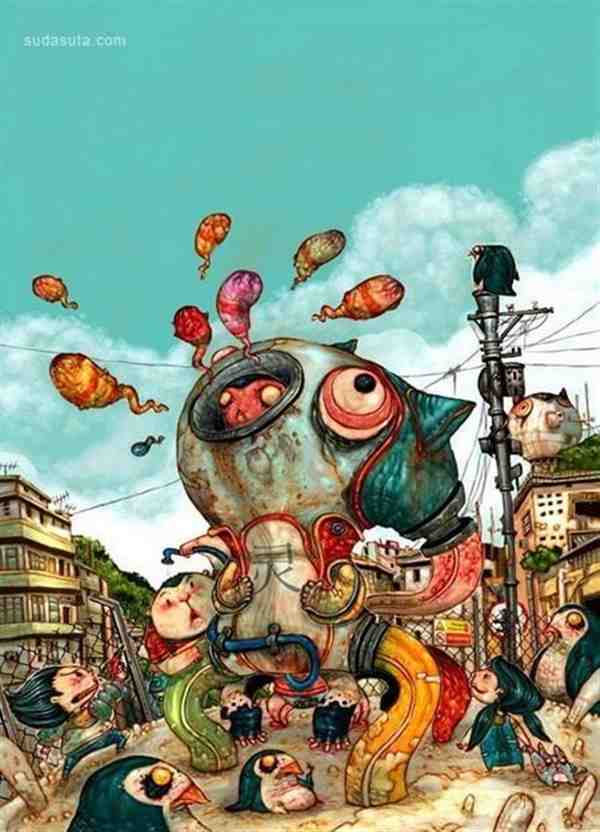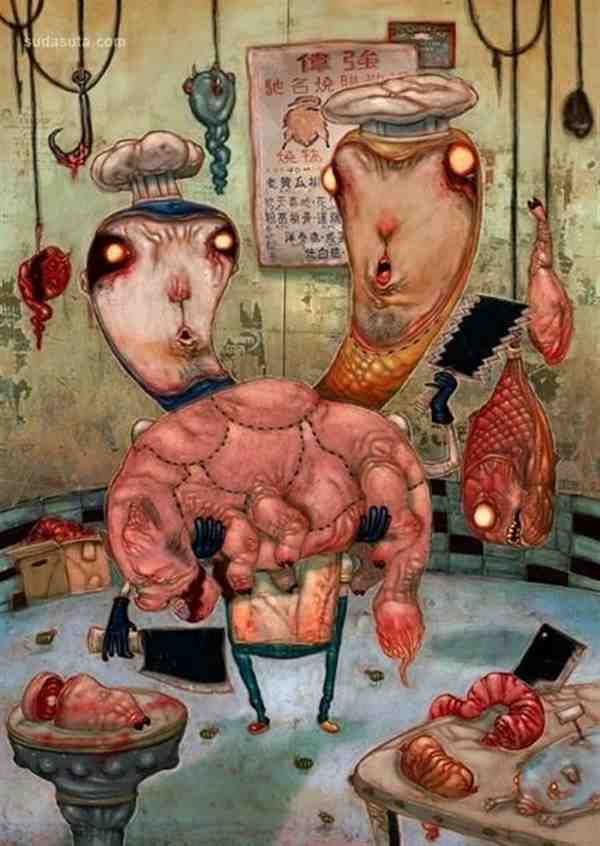 leong wan kok是位非常喜欢卡通动漫的艺术家,他绘制了风格怪异又恐怖的插画图片,图片中即有动物也有人物,有兴趣的亲一起来看看这组艺术家leong wan kok荒诞怪异动漫手绘插画图片吧!