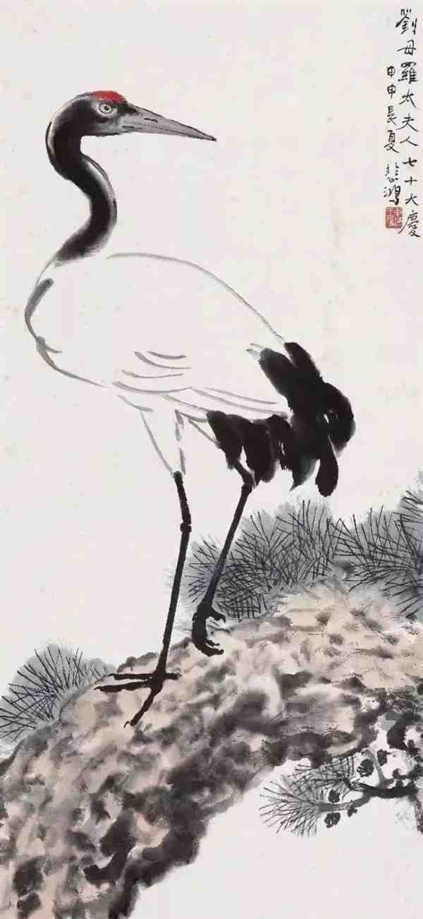 当我们欣赏徐悲鸿的《松鹤延年》时,不禁为其精湛的画技所折服。画面中的松树挺拔有力,仙鹤翩翩起舞,每一个细节都经过精心的描绘。而松树与仙鹤的结合,更是寓意深远。松树,象征着不屈不挠、坚韧不拔的精神,与徐悲鸿在逆境中坚守艺术追求的人生经历相得益彰。而仙鹤,作为吉祥、长寿的象征,传递着徐悲鸿对生活的美好向往和对艺术的执着追求。