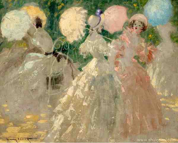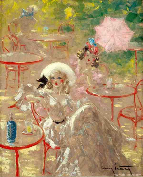 以上是关于Louis Icart油画作品图片。路易艾卡托(Louis Icart)(1880-1950年)出生于法国图卢兹。二十世纪初,早期绘画尤其感兴趣时尚。1914年遇到了一个金发女郎Huani Volmers,帕基时装店的雇员,她终是成为他的妻子和给他带来一生艺术灵感的源泉。事实上,在后来移居纽约后的时间里,他已经远离了时尚艺术运动,也没有太在意当代艺术印象派德加和莫奈的作品。尽管如此,人们还是可以看到在他难得的水彩画中,有着很强的象征主义奥迪隆雷东和古斯塔夫莫罗的影子。1950年在巴黎逝世,享年70岁。