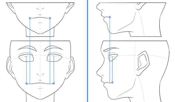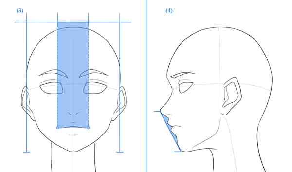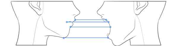至于轮廓脸,眼睛的下半部分有助于限制静止的人嘴的宽度,而不会表现出情绪(3)。最后,从侧面看,嘴巴呈向下的对角线形状,鼻子和下巴之间的线(4)可以用来保持正确的位置。