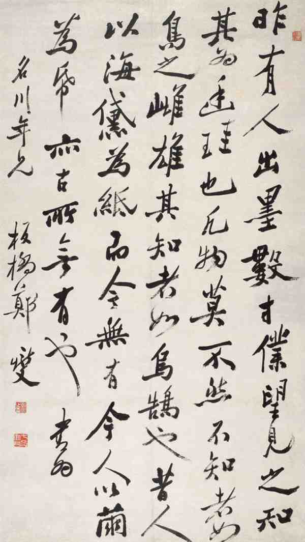 郑板桥的书法作品,如同一幅幅流动的山水画,既有古拙雄浑的气势,又不失灵动婉约的韵味。他的字,既有楷书的端正,又有行书的流畅,更有隶书的宽扁。一笔一划,仿佛都在诉说着他的心境与人生。