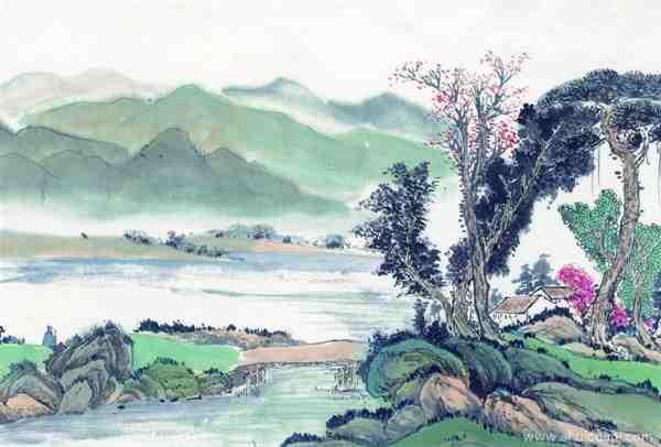 山水画是中国画中的一个大科目,要学习山水画先从画石头或树木基本练习画起,熟悉各种山石、树木、石质、树叶、树干等等的基本画法。最好能做到熟记于胸,能默写出来,然后把熟记于脑中的一山一石,一树一木随意拼装起来变成一幅作品。今天呢就一起来欣赏一组有意境的中国古典山水国画图片吧。