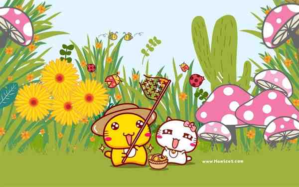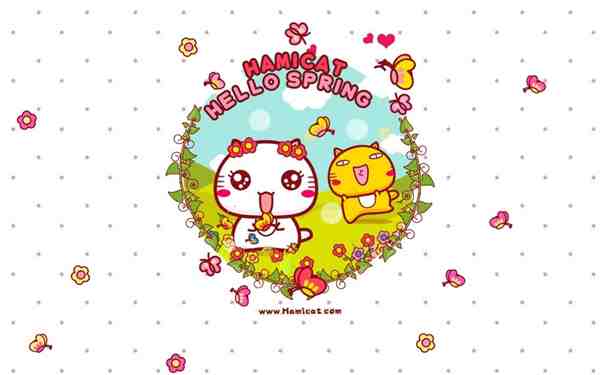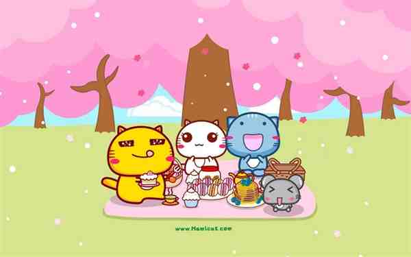 可爱哈咪猫家族春天来了系列动漫手绘壁纸