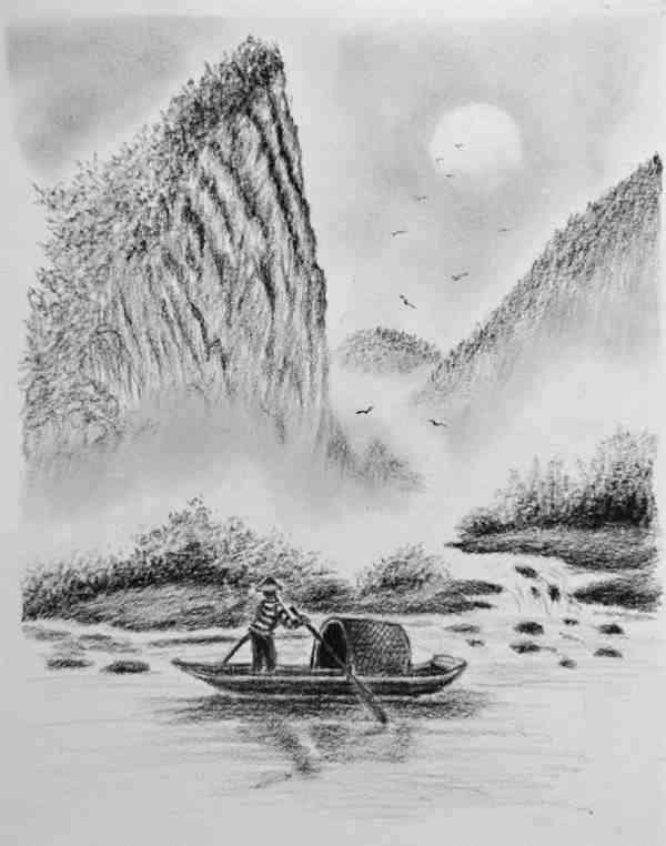 这幅铅笔山水画,不仅是对祖国大好河山的赞美,更是对人与自然和谐共生的美好愿景的展现。它让我们领略到了大自然的神奇力量和人类智慧的无穷魅力。让我们珍惜大自然赋予我们的一切美好资源,保护环境、守护家园。让我们共同传承和弘扬祖国优秀的文化传统,让这些宝贵的财富在新的时代里焕发出更加绚丽的光彩!