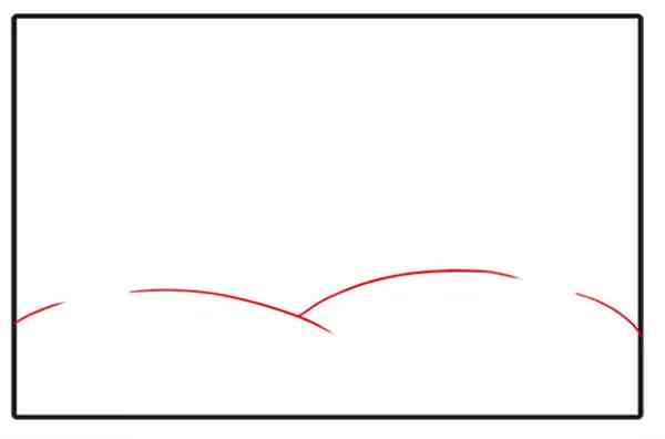 步骤六:勾勒出云(使用直线水平线和弧线描绘出云朵。)