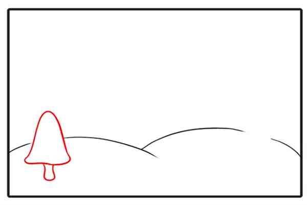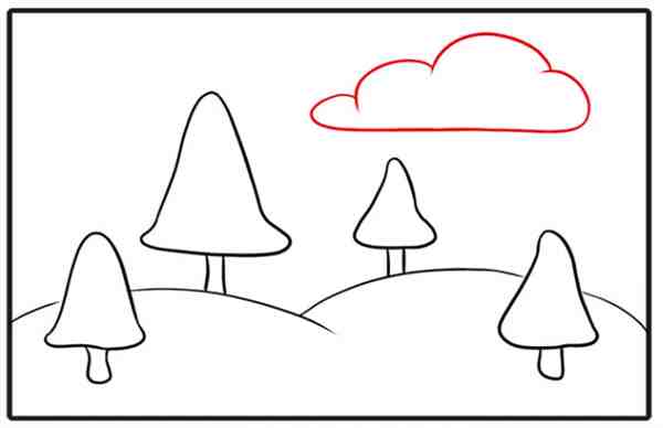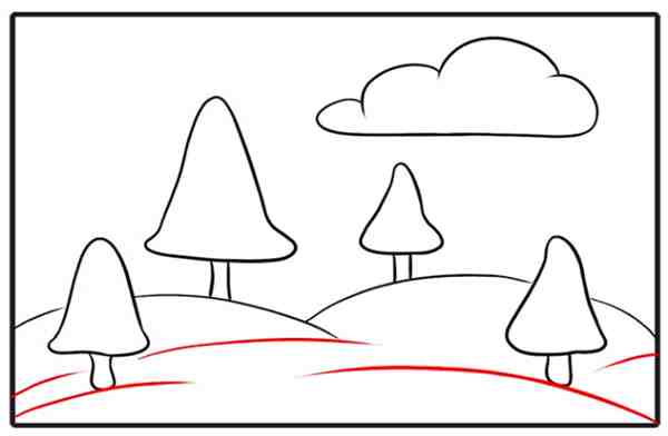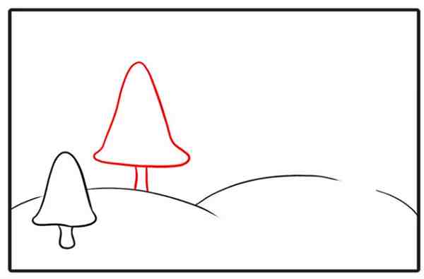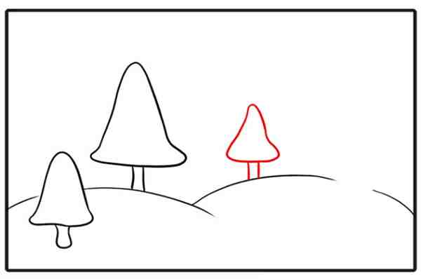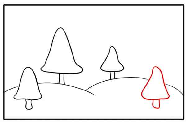 步骤二:画出树(在上一步绘制的山丘之上,使用曲线描绘树的轮廓。)
