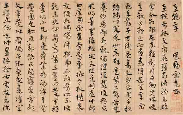 该作品为纸本,纵20.4厘米,横343.8厘米,临自《皇象书急就篇》,笔法精劲,为其精力充沛时期的上乘之作。宋克学书取法魏晋,深得钟、王之法,擅长楷书、草书,尤精工章草,为当时第一。他的章草延续赵孟頫、邓文原的风格又有所发展,融入了今草和行书的写法,流走畅贯,挥运自如,似飞剑狂舞,潇洒纵横,十分契合于其“任侠使气”的性格。如需更多关于宋克《急就章》的信息,可以查阅书法类书籍或咨询书法领域专家。