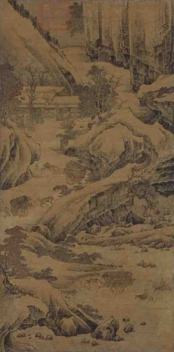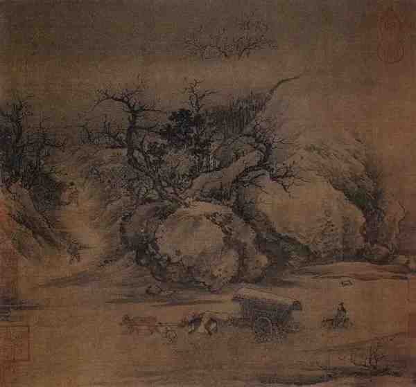 朱锐原为北宋宣和画院待诏,南渡后复职高宗绍兴画院,并授迪功郎。他师法王维,所画多骡纲、雪猎、盘车、行旅等题材,表现了车辆旅人跋涉于荒寒苍凉的溪山之间的艰辛之状。其画作注重情景交融,形象真实生动,充满诗意和感染力。