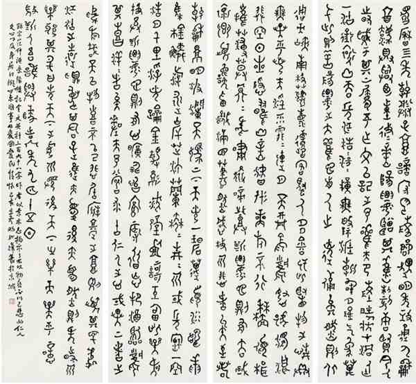 5、邓石如(1743年-1805年):清代书法家,邓石如是清代中后期著名的篆刻家、书法家,他的金文作品被誉为“邓派”篆刻的代表,具有独特的风格。他的代表作品有《篆刻三体书》、《邓石如印谱》等。