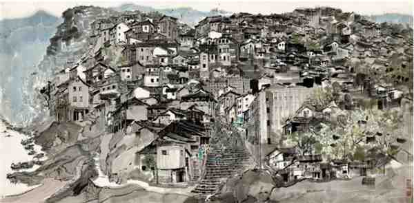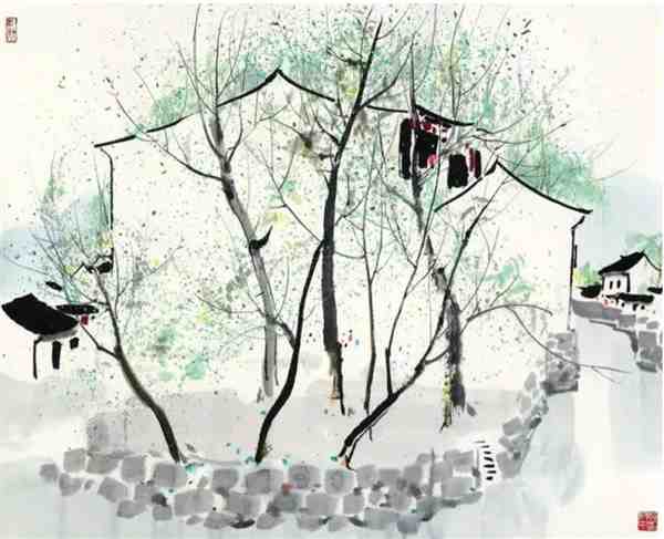 吴冠中徽派建筑水墨画作品