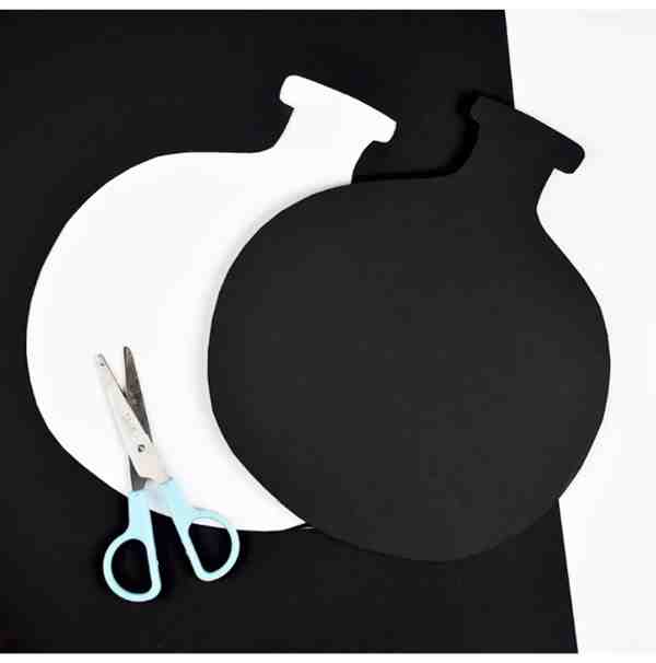 Step 1.准备一张黑色的卡纸,在纸上画出瓶子的形状并剪下来。