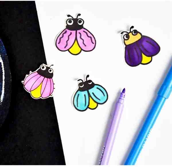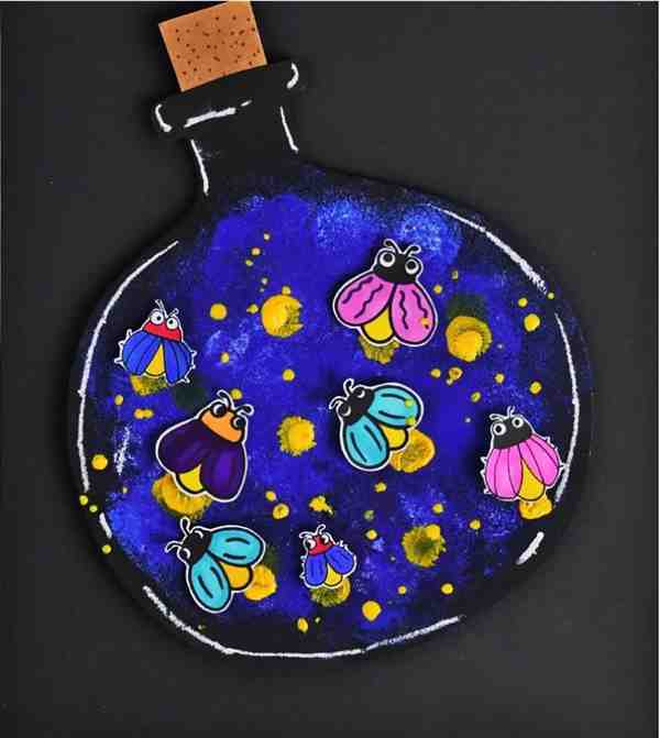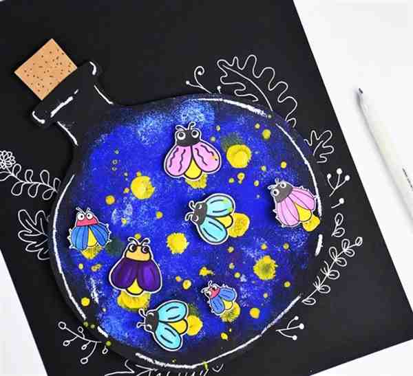 Step 6.在另一张纸上画出几只大大小小的萤火虫,并涂上颜色剪下来。