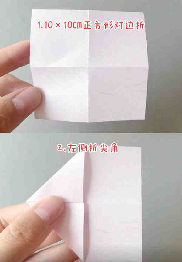 1、 10x 10CM正方形对边折。