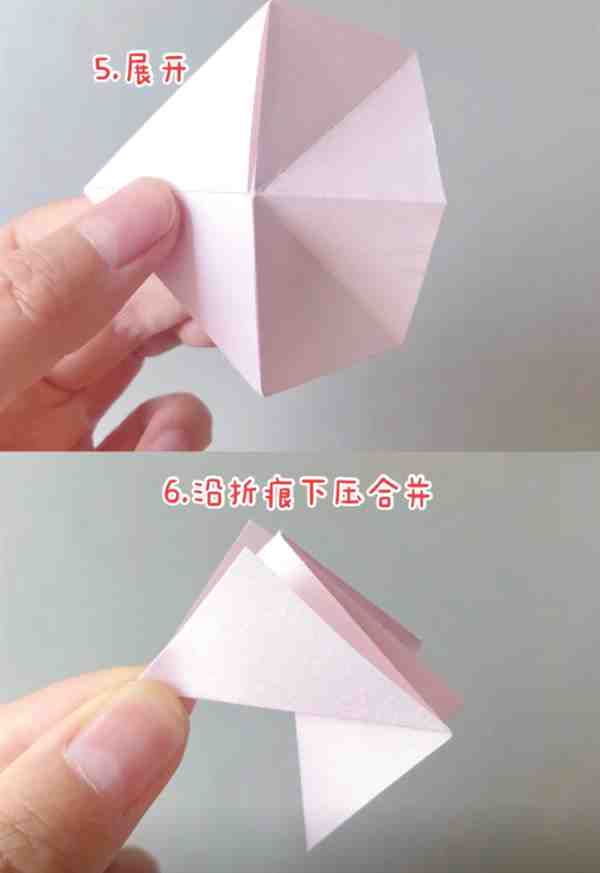 6、 沿折痕下压合并。
