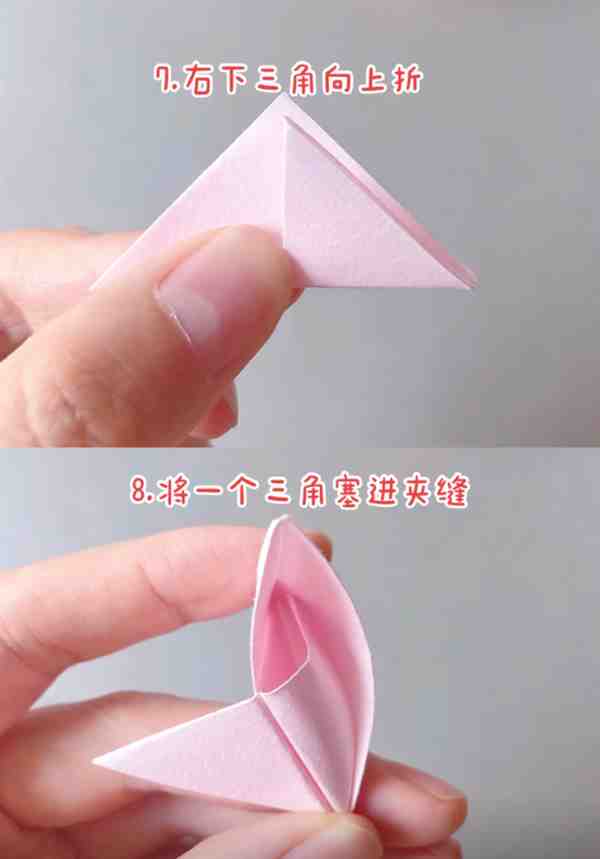 7、 右下三角向上折。