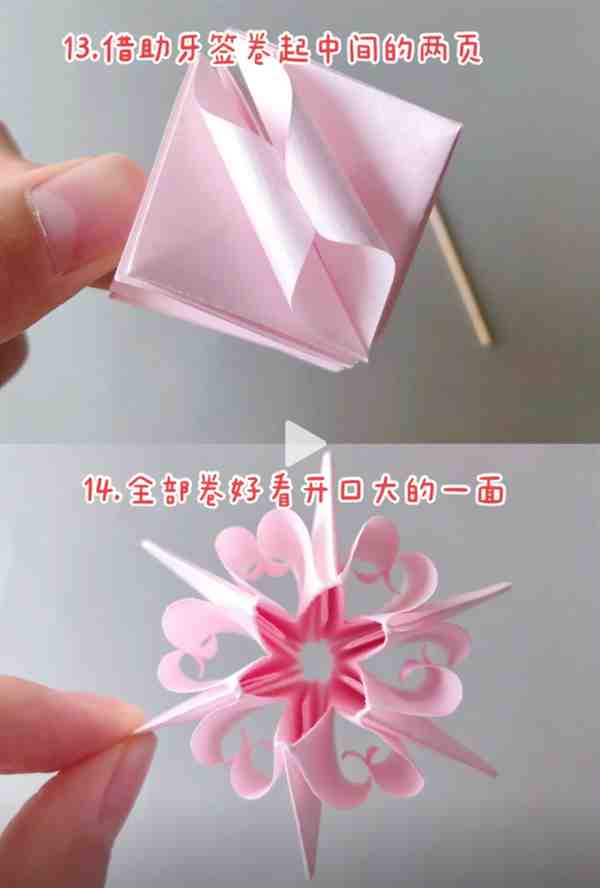 15、 从大开口的一端向外打开,背后一面就是花朵。
