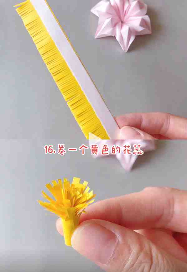 16、 卷一个黄色的花蕊。