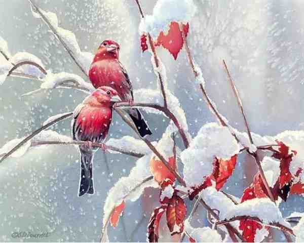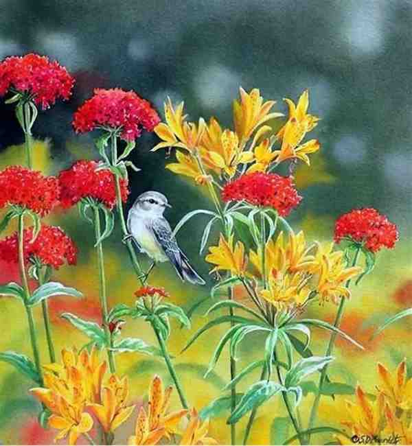 今天欣赏一组来着美国超级逼真的水彩画家Susan Bourdet作品四季花鸟水彩画,每一幅的艺术表现手法都不一样,带来的感觉却是相同的。
