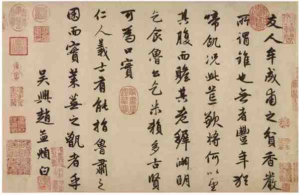 他是赵宋一个没落贵族,后来与元朝合作。赵孟頫等二十余人是至1287年(元二十四年)第一批被征召,其后,屡次征召江南士大夫,也有通过赵孟頫而求得利禄职位的。赵孟頫受到元代皇帝的宠爱,“荣际五朝,名满四海”,官至翰林学士,艺术上成为元代文人画的领袖人物。