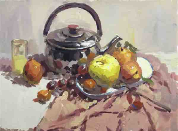 深入刻画物体的细节,做好用色彩表现体积感,还有需要注意的是不锈钢物体的反光属性。