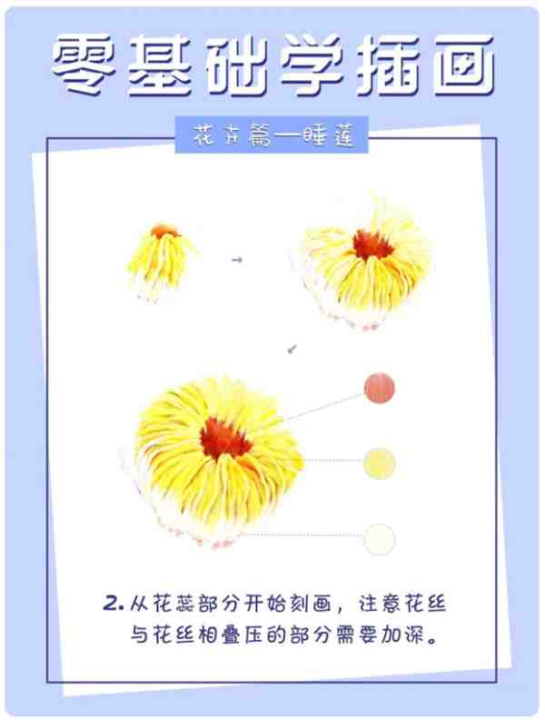 Step 2.从花蕊部分开始刻画,注意花丝与花丝相叠压的部分需要加深。