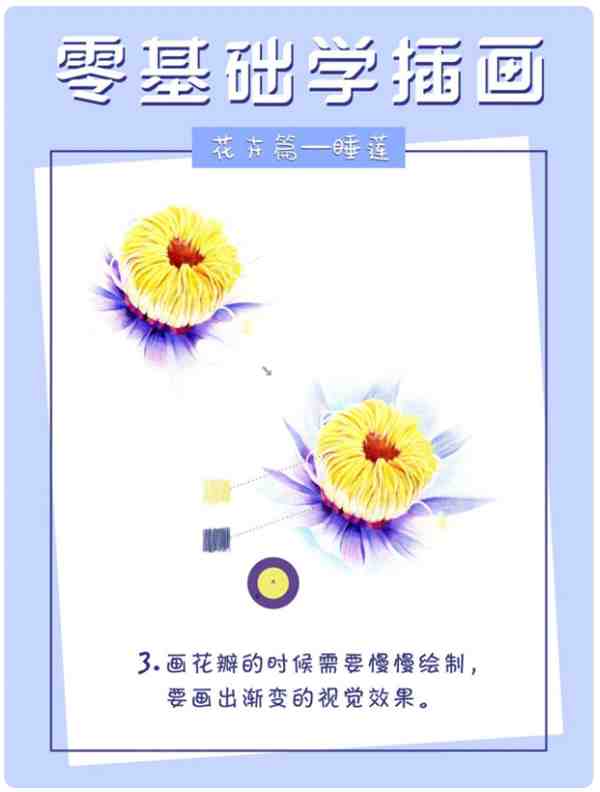 Step 3.画花瓣的时候需要慢慢绘制,要画出渐变的视觉效果。
