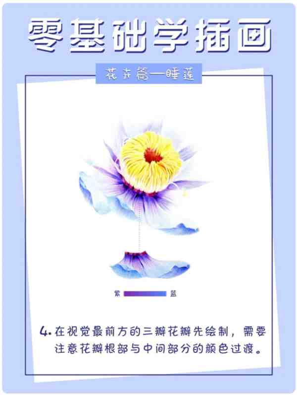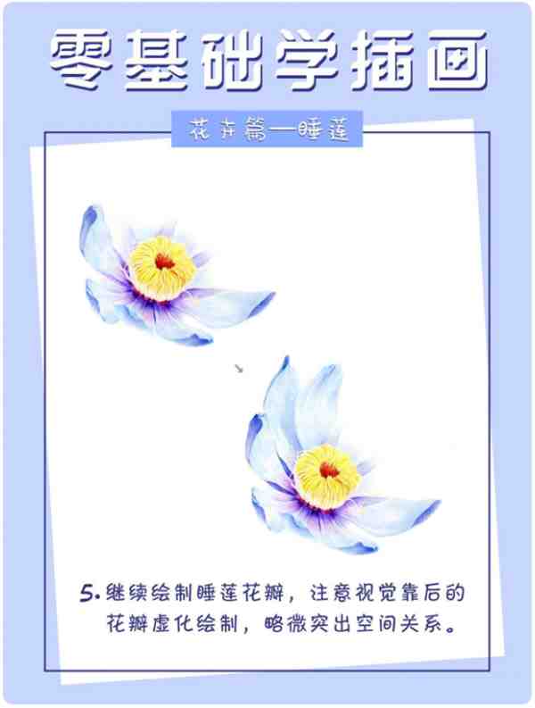 Step 5.继续绘制睡莲花瓣,注意视觉靠后的花瓣虚化绘制,略微突出空间关系。