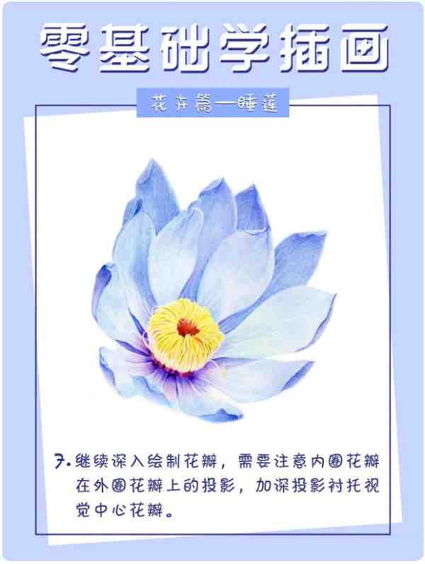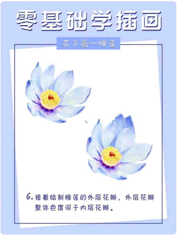 Step 6.接着绘制睡莲的外层花瓣,外层花瓣整体色度深于内层花瓣。