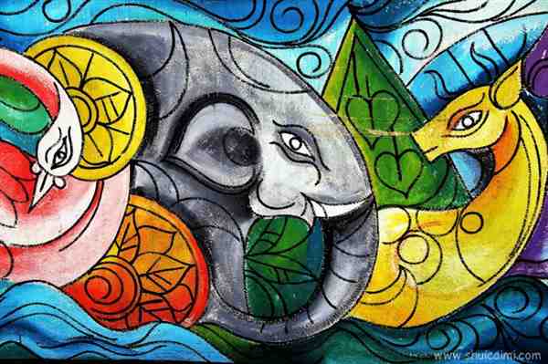 以上是关于墙上的多彩涂鸦图片。涂鸦也指艺术上的各种颜色交融,以抽象的感觉描绘出一种色彩的特殊风格。