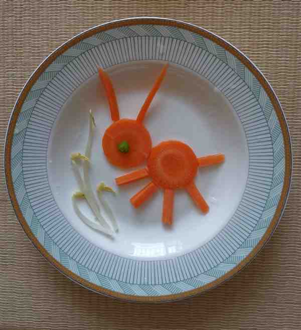 老师给我们每人发了一些蔬菜切片和一张白纸,然后教我们如何用这些蔬菜切片拼出一张美丽的画。我选了一个小南瓜切片当太阳,用胡萝卜切片拼出了云朵和彩虹,还用西兰花切成小朵朵来装饰画面。我觉得自己就像是一个小小的艺术家,用自己的想象力和创造力拼出了一幅美丽的画。