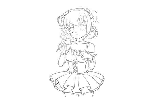 勾勒线稿。细化了五官、发型、衣服样式后,我们将能够确定的轮廓勾勒出来,明确上色的边界,注意线稿的线图不要断开。