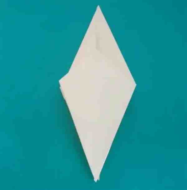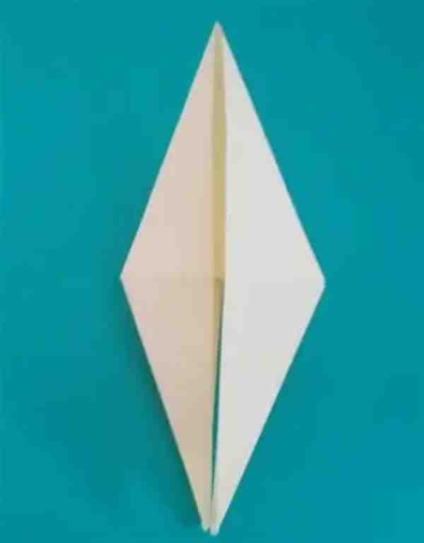 把前面步骤折叠的折纸部分展开,同时把折纸沿着折痕轻压,折出一个菱形来,反面部分,也是如此的操作,如图