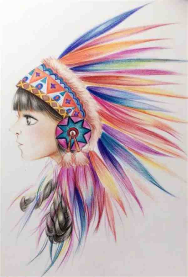 很多国外的装束都很好看,今天给大家带来的是彩铅画印第安少女人物教程步骤图,印第安少女彩铅教程头饰羽冠是印第安人服饰最大的亮点,下面一起来学习吧!