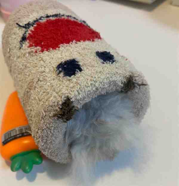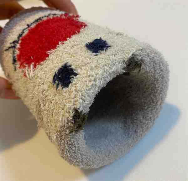 材料:矿泉水瓶、一只毛茸茸的旧袜子1.把瓶子剪开留下半部分