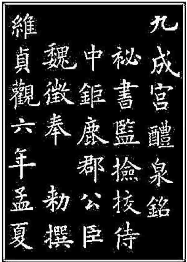 代表作:楷书以《九成宫醴泉铭》,行书以《梦奠帖》《张翰帖》等为最著名。其他书体,也无一不佳,《九成宫醴泉铭碑》被后世喻为“天下第一楷书”或“天下第一正书”,享有“楷书之极则”的美誉,被历代书家奉为楷书的楷模,亦是历代书法初学者临摹最多的作品。