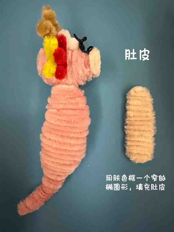 Step 14.两个小脚找好位置,能让龙站立起来,粘在肚皮两侧。