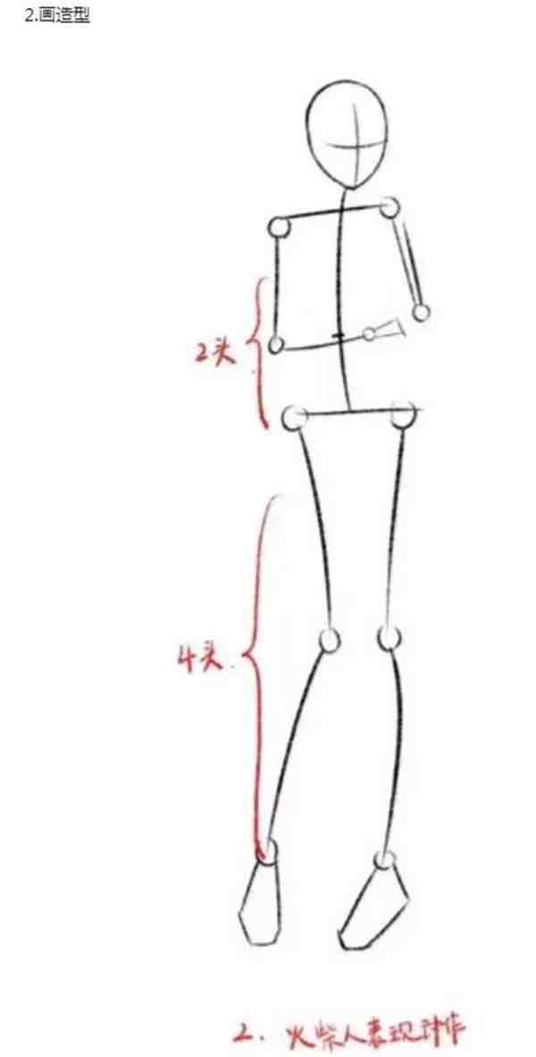 用直线和关节来表现角色的一个整体的动作造型,上肢与下肢大约是两头和四头的长度。