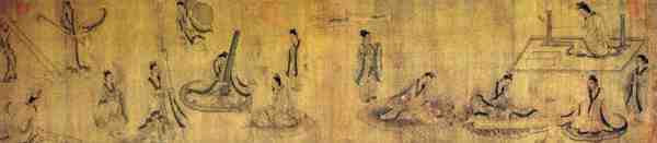 4、《斫琴图》:此画描绘了古代文人制造琴器的情景,充满了文人的雅致和情趣,体现了顾恺之对人物和场景的细腻刻画。