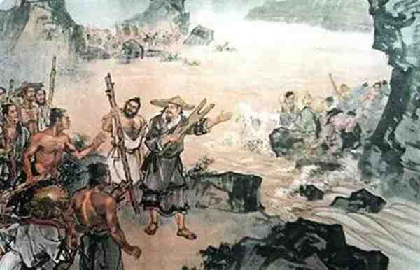 10、《夏禹治水图》:运用细腻的笔触和生动的构图,将夏禹的形象刻画得栩栩如生。他身穿粗布衣裳,头戴斗笠,手持治水工具,神情坚毅而专注。周围是忙碌的民众和汹涌的洪水,形成了鲜明的对比,凸显了治水的艰辛和夏禹的伟大。