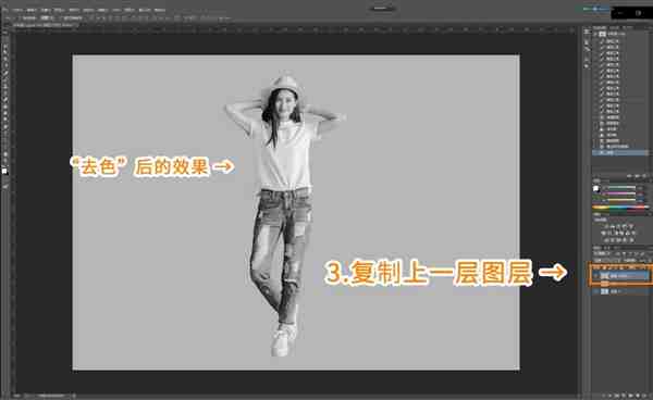 照片去色:点击上方菜单“图像”—选择“调整”—选择“去色”。
