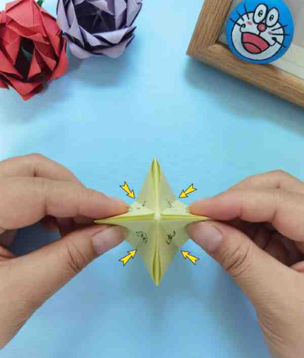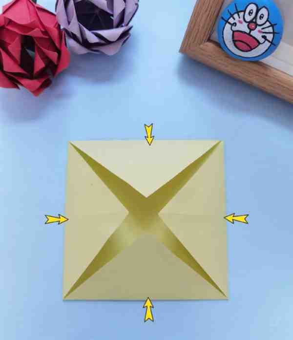 Step 4. 四个角向内折(可以写一些小奖励和惩罚)。