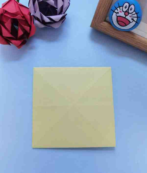 Step 1. 一张正方形纸“米”字折法压出折痕。