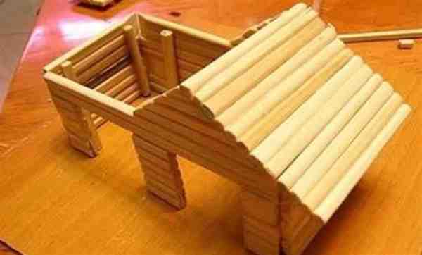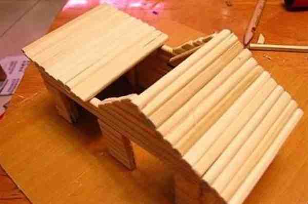 4.利用502胶水将一次性筷子粘贴成可爱仓鼠笼子的房顶,如图所示。