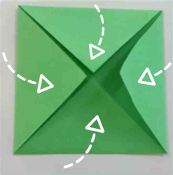 5、沿中心翻折,形成三角