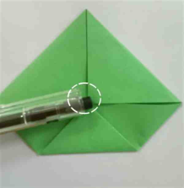7、翻面,再沿中心折成三角