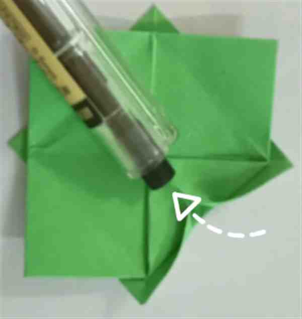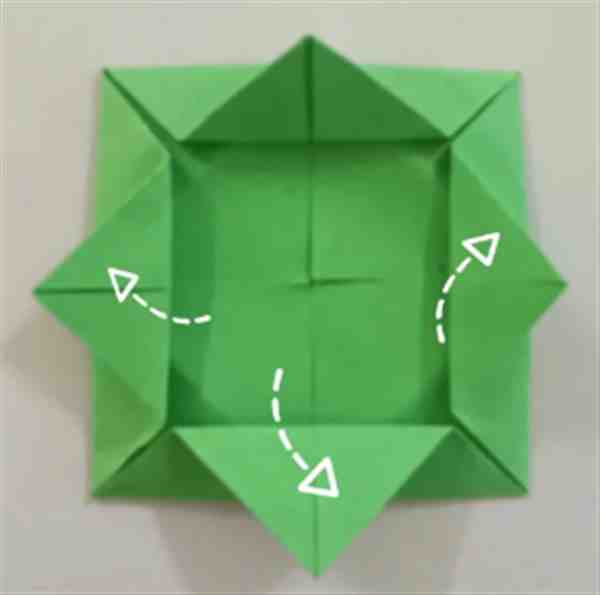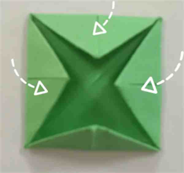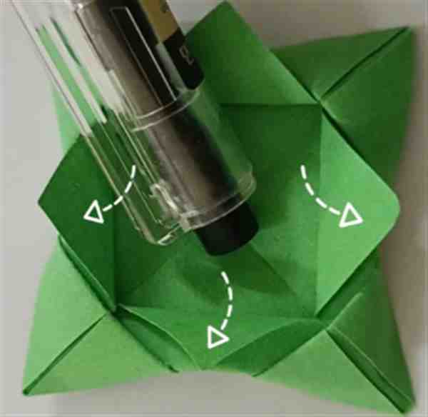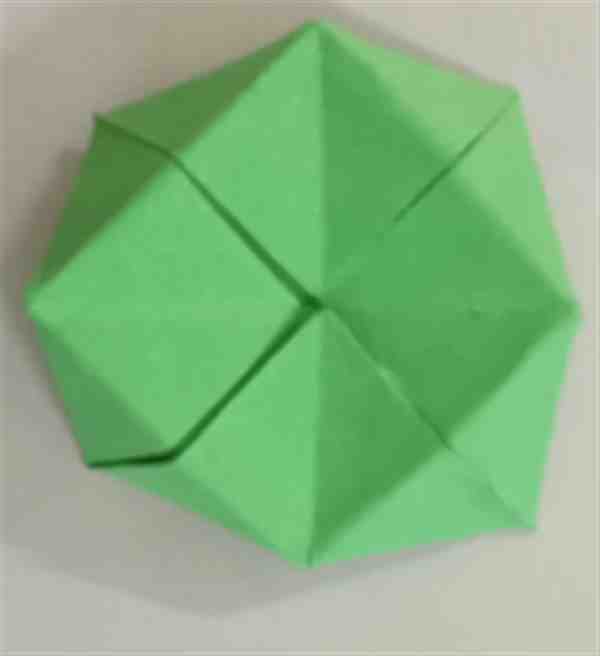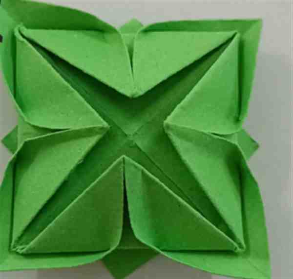 15、与14同理再操作三次,就可以得到一朵纸莲花了。