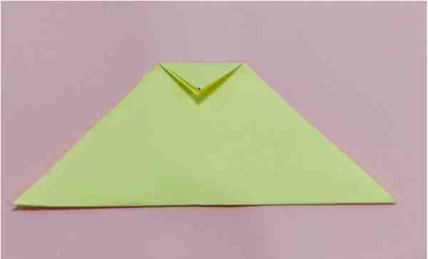 第三步,如图所示,下面向上折两个角,折出猫的耳朵。