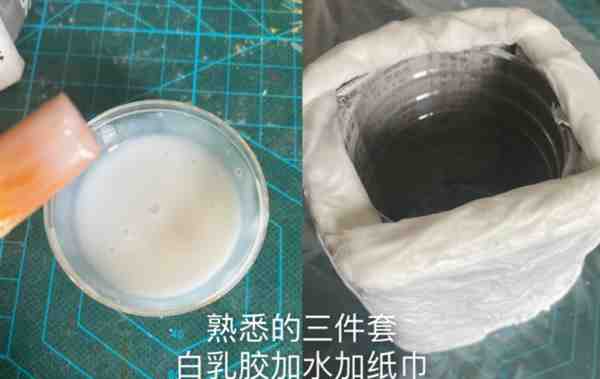 所需材料:空塑料瓶、报纸、白乳胶、纸巾、剪刀、超轻黏土、眼影或色粉、丙烯颜料