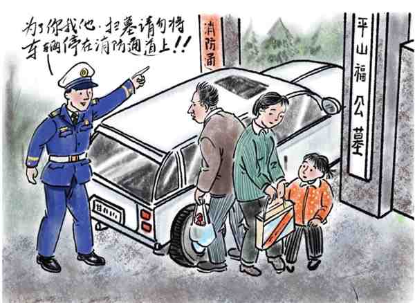 为了你我他,扫墓请勿将车辆停在消防通道上。