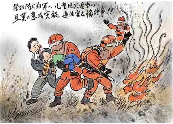 祭扫防火为第一,儿童玩火要当心,且莫大意成灾祸,违法害己悔终身。